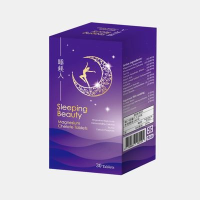 甘胺酸鎂、微晶纖維素、牛磺酸、磷酸氫鈣、硬脂酸、交聯羧甲基纖維素鈉、硬脂酸鎂、羥丙基甲基纖維素、二氧化矽、水、羥丙基甲基纖維素、甘油、二氧化鈦